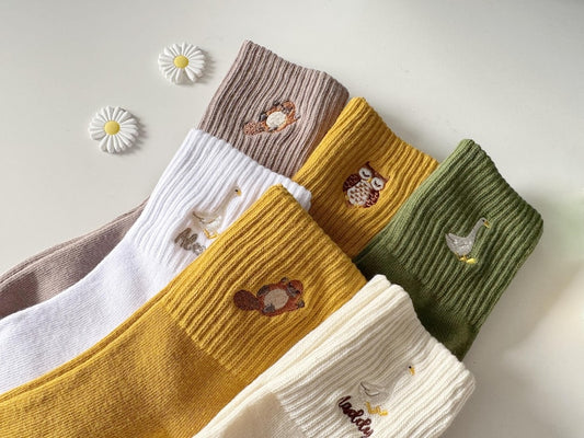 Embroidered Animal Socks, Personalized Womens Socks with Goose, Owl, Duck, Platypus or Your Design, 8 Colors, 2 Sizes, Custom Christmas Gift