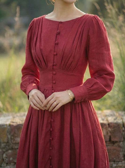 Vintage Linen Dress Boat Neck Dress 1950s Dress Princess Dress Women With Pockets Elegant Dress Wedding Dress Personalized Gifts For Her