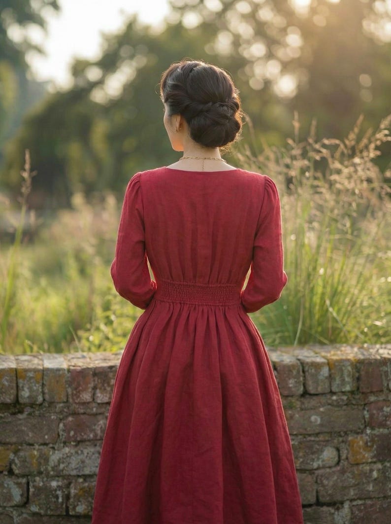 Vintage Linen Dress Boat Neck Dress 1950s Dress Princess Dress Women With Pockets Elegant Dress Wedding Dress Personalized Gifts For Her